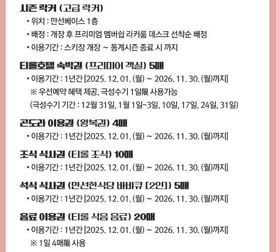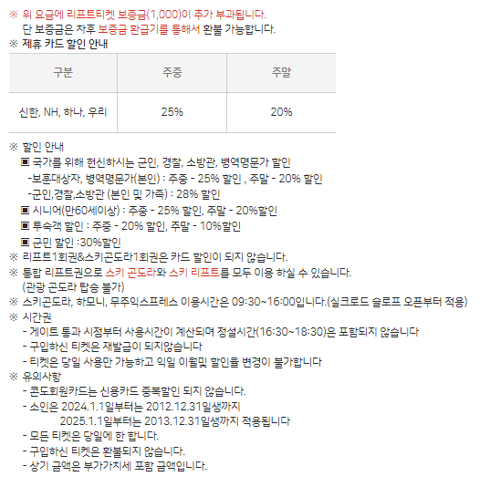 시즌별, 연령별 요금 체계를 미리 확인하고 예약하면 예산 계획을 세우기 수월합니다. 아래는 2024-2025 시즌 기준 주요 요금표입니다.