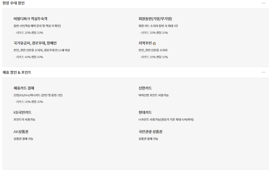 - 평일 이용 : 주말 대비 최대 40% 저렴